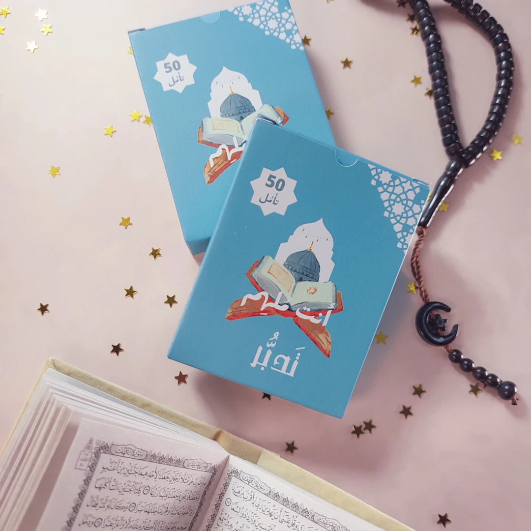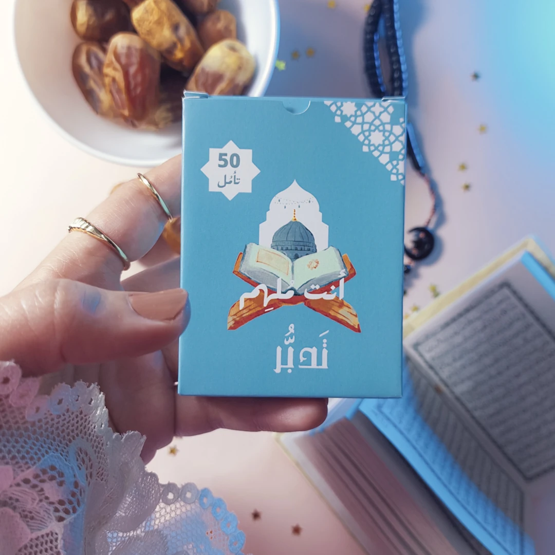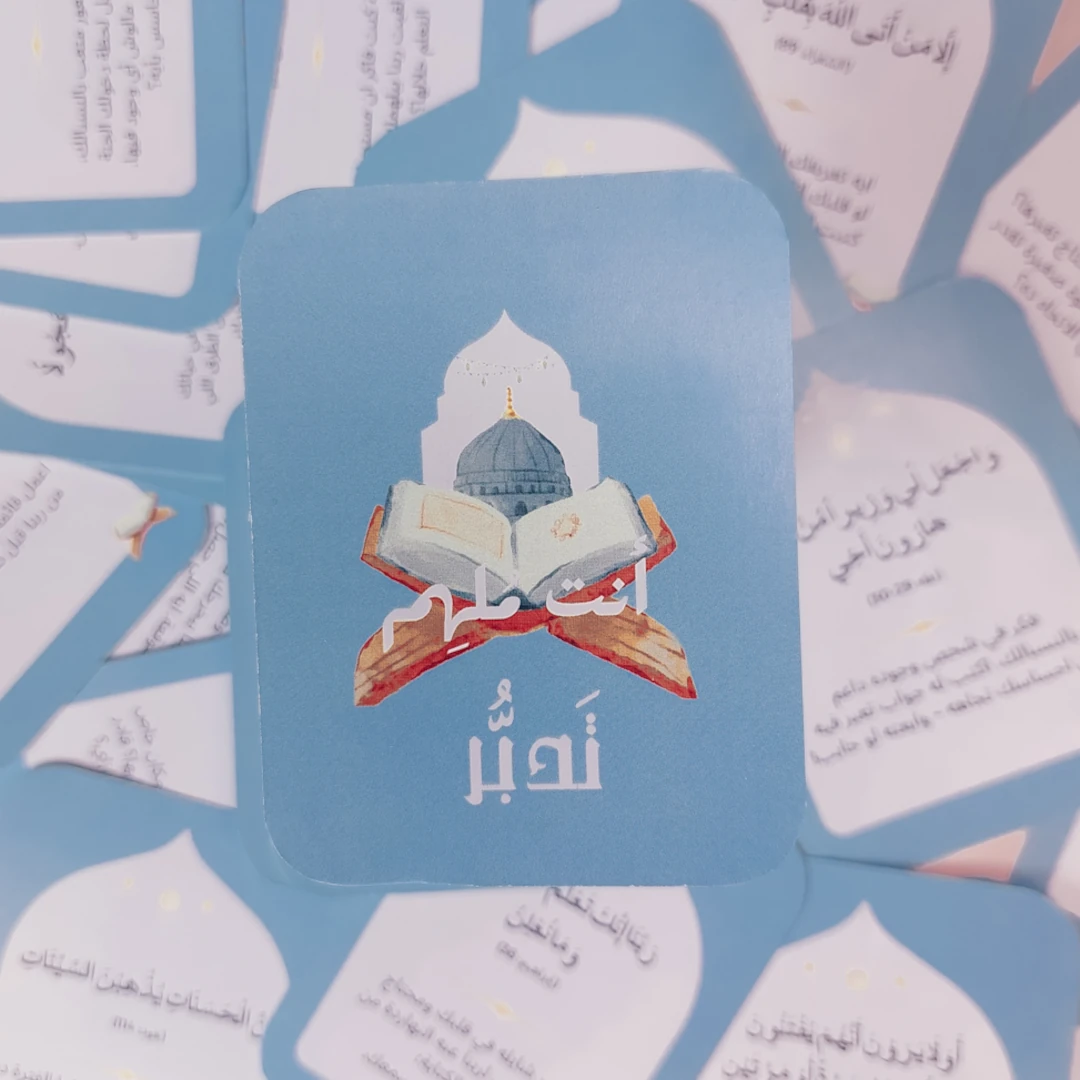 كروت تدبر عبارة عن 50 تأمُل بيساعدونا نتدبر آيات القران ونتواصل مع ربنا ومع نفسنا بشكل أعمق… من خلال الكتابة ✍️ أو كمان المناقشة مع أصدقاءنا
