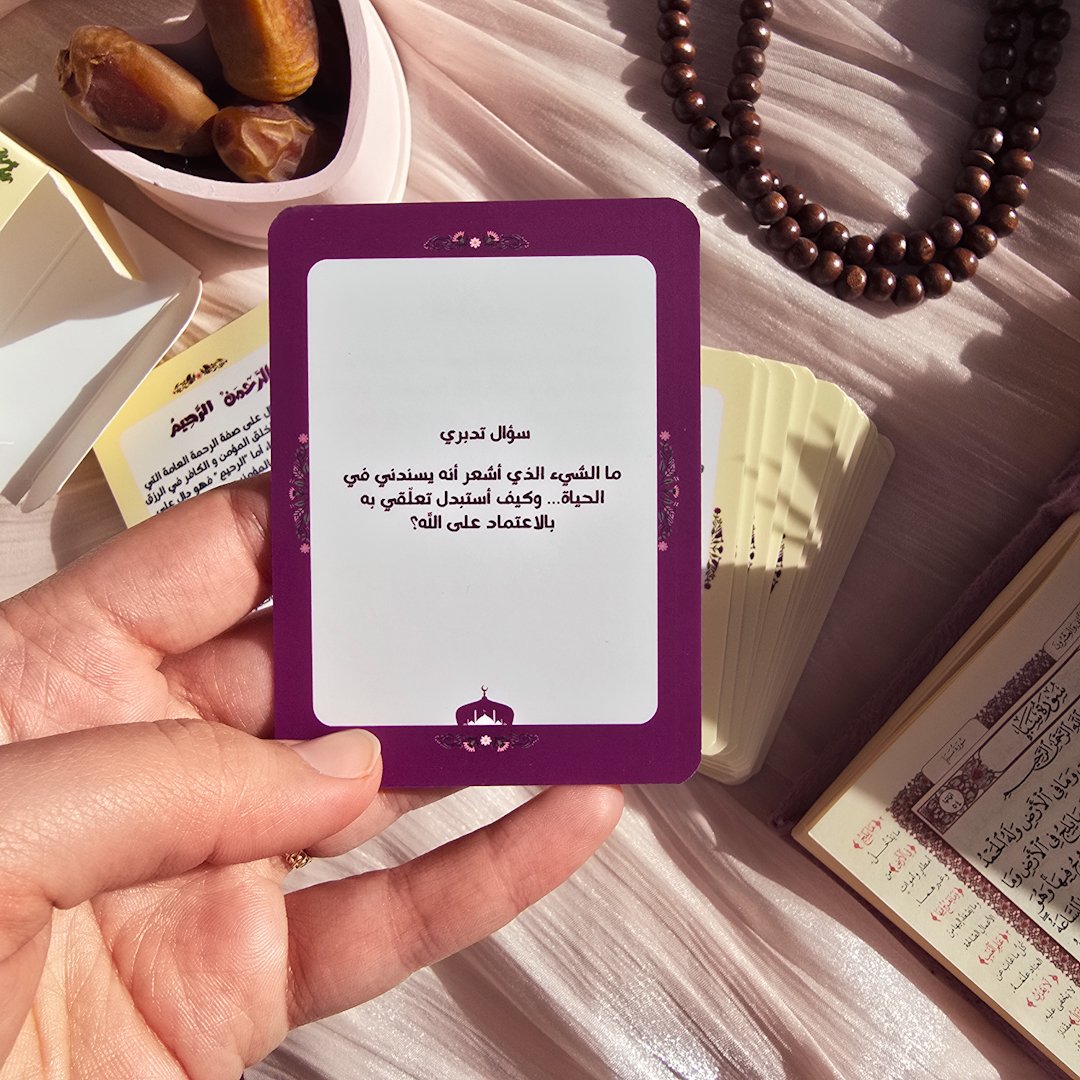 🔸️كروت تدبر القرآن: 50 تأمل وسؤال تدبري يساعدك على فهم آيات القرآن والتفاعل معها بالكتابة أو النقاش.